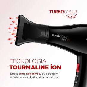 Secador com tecnologia que cuida da saúde dos seus fios! O Turbo Color Red tem revestimento com Tourmaline Íon, mineral que emite íons negativos, reduz o frizz e deixa seu cabelo macio e brilhante. Ainda possui 1.900W de potência para uma secagem super-rápida e eficiente.