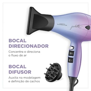 - Bocal difusor é perfeito para secar cabelos cacheados, facilitando a modelagem e definição dos cachos