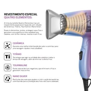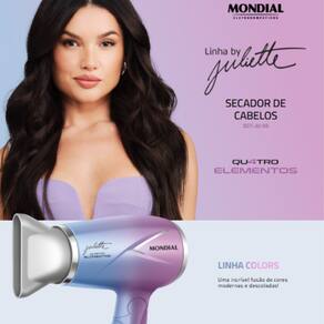 O Secador de Cabelo Travel da Linha by Juliette Qu4tro Elementos traz um revestimento especial enriquecido com infusão de Cerâmica, Titânio, Tourmaline e Nano Silver. Esses 4 elementos, juntos, protegem seus fios e garantem uma aparência mais saudável aos cabelos. Compacto, dobrável e projetado para caber perfeitamente na sua bolsa ou mala, o secador bivolt é perfeito para viagens, academia e a solução ideal para manter seu cabelo impecável onde quer que você vá. Saiba mais sobre o SCT-JU-03: