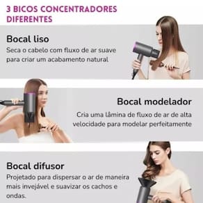 além de um incrível secador, este modelo conta com 5 acessórios para modelar e secar da melhor forma.
