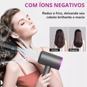 Tecnologia de íons negativos: Por ser iônico, lhe trará grandes benefícios na velocidade do tratamento e nos resultados obtidos: maior brilho e suavidade. Sua operação é através de íons negativos, que atingem as moléculas de água e as fracionam, reduzindo assim o tempo de secagem, aprisionando a umidade e eliminando os efeitos da eletricidade estática.