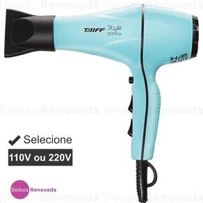 Principais Características Modelo: Style Cor: Azul Motor: AC Profissional Nível de Temperatura: 3 Níveis Velocidade: 2 Peso do Produto: 787g Potência Máxima: 2.000W Comprimento do Cabo: 1,8 Garantia do Fabricante: 6 Meses Cabo Giratório: Não Jato de Ar Frio: Sim Voltagem: 110V ou 220V (não é bivolt) Consumo: 2 KWH Com Alça para Pendurar Atributos Marca: Taiff Modelo: Style Taiff 2000W Detalhes do Produto