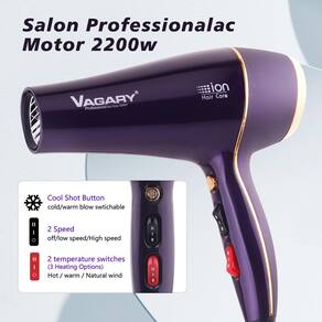 -?Secador de cabelo de salão profissional?: Este secador de cabelo tem um motor AC de 2200 watts, maior vida útil e seguro, distribui uniformemente o calor. Fornece forte fluxo de ar, a velocidade de secagem é muito rápida e prolonga a substituição do secador de cabelo. Reduz os danos, aumenta o brilho do cabelo.