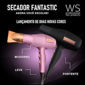 Lançamento Secador WS Fantastic 2400WAlta performance, 2 níveis de velocidade, 2 níveis de temperatura.127v 2400wMAIOR POTENCIA DO MERCADOPotência e vazão são as características principais do secador secador Fantastic proporcionando um trabalho mais rápido e eficaz.O secador Fantastic vem com uma nova tecnologia de alta performance, agrega ao seu salão mais eficiência e agilidade.Com o designer moderno deixa a sua experiência mais impactante.2500 watts no 220vSobre o produto:Motor professional A/C – com mais tecnologia e potência;Com íons – com melhor desempenho para secar, alisar e modelar os cabelos;Jato ar frio – com acabamento perfeito;Botão Liga/Desliga;Alça para pendurar;Cabo de 3m.LeveConteúdo da embalagem:1 secador linha fantastic;2 bicos;1 manual de isntrução1 certificado de garantia.