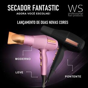 Lançamento Secador WS Fantastic 2500WAlta performance, 2 níveis de velocidade, 2 níveis de temperatura.220v 2500wMAIOR POTENCIA DO MERCADOPotência e vazão são as características principais do secador secador Fantastic proporcionando um trabalho mais rápido e eficaz.O secador Fantastic vem com uma nova tecnologia de alta performance, agrega ao seu salão mais eficiência e agilidade.Com o designer moderno deixa a sua experiência mais impactante.2500 watts no 220vSobre o produto:Motor professional A/C – com mais tecnologia e potência;Com íons – com melhor desempenho para secar, alisar e modelar os cabelos;Jato ar frio – com acabamento perfeito;Botão Liga/Desliga;Alça para pendurar;Cabo de 3m.LeveConteúdo da embalagem:1 secador linha fantastic;2 bicos;1 manual de isntrução1 certificado de garantia.