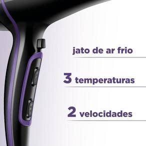 Secador De Cabelos Black Purple Mondial Scn-01 Secador Cabelo Scn-01 220v/60hz . Secagem rápida e eficiente com o novo Secador de Cabelos Black Purple Mondial SCN-01. São 2.000W de potência para uma secagem completa. Com a tecnologia tourmaline íon que sela a cutícula dos fios, eliminando frizz e dando mais brilho e maciez aos seus cabelos! Seu bocal direcionador direciona o fluxo de ar, facilitando a secagem e a modelagem. As 2 velocidades e 3 temperaturas permitem que você alterne entre elas para obter o resultado desejado. Para maior durabilidade e segurança o Secador de Cabelos Black Purple SCN-01 possui também grade traseira removível que irá te dar aquela ajudinha na hora de limpar o produto, aumentando sua vida útil. 1 ano de garantia. Modelo - SCN-01 Cor - Preto/ Roxo Voltagem (Tensão) - 127V/220V Itens inclusos - 01 Secador de Cabelos; 01 Manual de Instruções. Comprimento do cabo - 1,70cm Controle de temperatura - Sim Controle de velocidade - Sim, 02 velocidades Níveis de temperatura - 03 níveis Potência - 2000W Grade traseira removível - Sim Peso - 0,620kg Jato de Ar Frio - Sim Garantia - 1 Ano Marca - Mondial Ean: 7899882312539