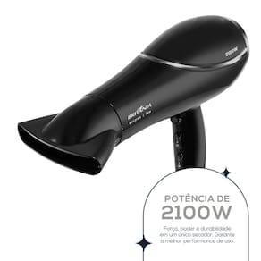 São 3 temperaturas e 2 velocidades, aliados a uma potência de 2100W. Além disso, acompanha acessório concentrador de ar com saída fina que concentra e direciona o calor, facilitando a secagem e modelagem dos fios.