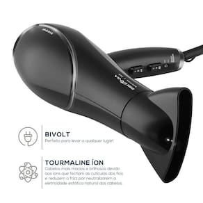 O Secador de Cabelos Britânia BSC2150 possui Tecnologia Íons Tourmaline, ou seja, cabelos mais macios e brilhosos devido aos íons que fecham as cutículas dos fios e reduzem o frizz por neutralizarem a eletricidade estática natural dos cabelos.