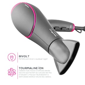 Proporcione aos seus cabelos mais maciez e brilho. A tecnologia Tourmaline Íons fecha as cutículas dos fios e reduz o frizz, neutralizando a eletricidade estática natural do cabelo.