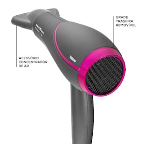 Com 3 temperaturas, 2 velocidades e jato de ar frio, este modelo oferece variedades de ajuste para diferentes tipos de fios. O jato de ar frio é ideal para o acabamento e modelagem. Inclui acessório concentrador de ar (bico direcionador) com saída fina para maior precisão.