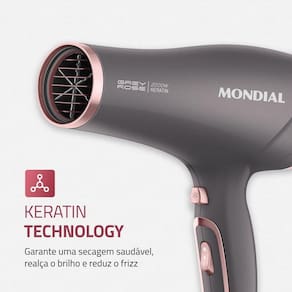 O secador de cabelo Grey Rose Keratin SCN-11 da Mondial tem um design moderno e protege seus fios durante a secagem. Incrível, né? Isso porque ele possui o Keratin Technology, a tecnologia com queratina que garante uma secagem saudável, realça o brilho e reduz o frizz. Além disso, ele também tem revestimento com Tourmaline Íon e sela a cutícula dos fios, deixando-os mais disciplinados e macios. Saiba mais sobre o SCN-11 da Mondial: