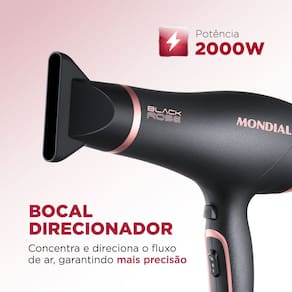 Você busca praticidade na hora de secar o cabelo? Os 2.000W de potência do Black Rose SC-37-BI garantem um excelente desempenho para secagem ágil e eficiente. Além disso, a tecnologia Tourmaline Íon proporciona um aspecto mais saudável aos fios, reduzindo o frizz. Saiba mais sobre o Secador de cabelo Mondial: