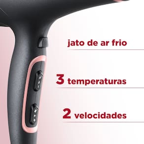 3 TEMPERATURAS + 2 VELOCIDADES: Escolha a combinação ideal para o seu tipo de cabelo.