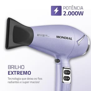 O secador de cabelo Space Shine SC-21 da Mondial tem um design moderno e uma tecnologia que garante hiper brilho aos fios. O Tourmaline Íon protege seu cabelo durante a secagem, reduz o frizz e proporciona um brilho radiante. Além disso, os 2.000W de potência oferecem uma secagem ágil e eficiente.