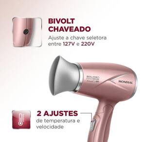 BIVOLT CHAVEADO: Ajuste a chave seletora e use o secador de cabelo Mondial em tomadas 127V ou 220V.