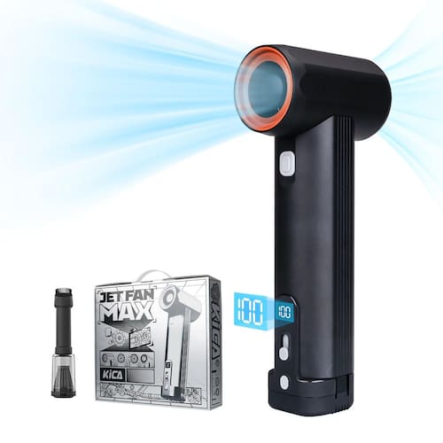 - Conveniência sem fio – ao contrário dos sopradores de folhas tradicionais, o soprador de ar sem fio KiCA JetFan MAX vem com uma bateria embutida, permitindo que você o use em qualquer lugar sem o incômodo de conectá-lo.