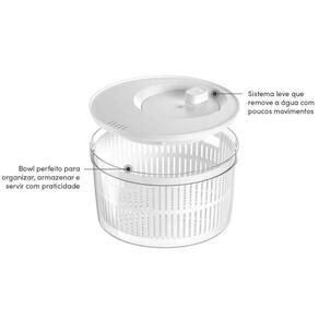 Secador de Saladas Legumes Centrifuga com Escorredor 5,5l Branco Ou Clear Fresh.