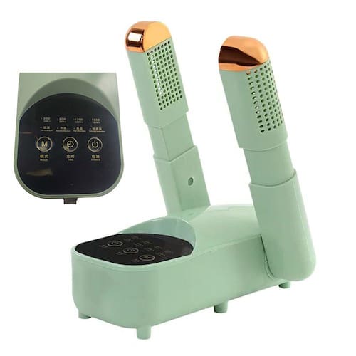Este secador de sapatos apresenta um design dobrável de 90 graus que permite ajustar o ângulo de secagem ao formato e tamanho dos seus sapatos. Isso ajuda a evitar que os sapatos sejam deformados e danificados durante a secagem.