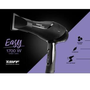 Caracteristicas: Marca: Taiff Modelo: Easy Potencia: 1700W Motor: AC Profissional Cabo: 1,80 metro de comprimento Velocidade: 02 Temperatura: 02 Termostato: sim Argola: sim