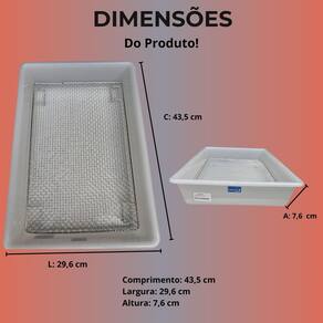 Secador Escorredor Fritura Bandeja 29,6x43,5x7,5cm Salgados A solução ideal para quem busca praticidade, higiene e eficiência no preparo e armazenamento de alimentos A bandeja multiuso em polipropileno de 7,5 litros com a tela grelha escorredora em aço estanhado, proporcionando um conjunto completo para escorrer frituras, armazenar carnes, legumes, frutas e muito mais. Versátil, resistente e seguro para ou doméstico. Ideal para: Escorrer pastéis, batata frita, salgados, coxinhas e frituras em geral Uso em cozinhas industriais, refeitórios, padarias, lanchonetes, food trucks ou residências Resfriamento ou secagem de alimentos Itens Inclusos: 01 Bandeja Branca Multiuso - Capacidade 7,5 Litros 01 Tela Grelha Escorredora em Aço Estanhado Especificações da Bandeja: Material: Polipropileno livre de BPA Cor: Branca Modelo: DF-0737 - Marca Daifpro Comprimento: 43,5 cm Largura: 29,6 cm Altura: 7,5 cm Capacidade: 7,5 Litros Características: Apta para lava-louças Pode ser Utilizado em freezer e micro-ondas Não possui pés dobráveis Especificações da Tela Escorredora: Material: Aço estanhado de alta resistência Modelo: df-25x39 - Marca Daifpro Grelha escorredora Tipo grade Comprimento: 39 cm Largura: 25 cm Altura: 2 cm Diâmetro da trama: 0,6 cm Funções: Escorrer, secar e resfriar alimentos Diferenciais: Estrutura firme, durável e resistente à corrosão