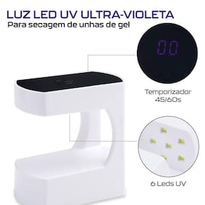 Secador Estufa de Unhas em Gel UV Ultra Violeta Portátil 6 Leds - Marca: Dremax - Referência: SCU6 - Potência: 24W - 6 Leds UV - Carregamento por USB - Leve e portátil - Display temporizador 45/60s - : 90 dias contra defeitos de fabricação Marca: Não Informado Ean: 7734625982641