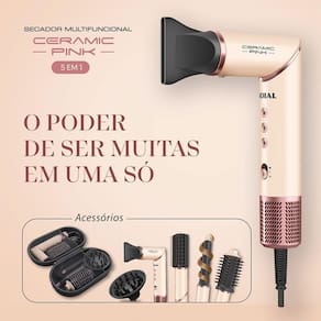O Secador Multifuncional 5 em 1 Mondial Ceramic Pink é um aliado versátil, potente e multifuncional que acompanha todas as suas versões, simplificando a rotina: seca e finaliza ao mesmo tempo, unindo praticidade e liberdade para o dia a dia. O motor Brushless oferece leveza, menos ruído e um fluxo de ar intenso que seca seu cabelo mais rápido, com menos calor nos fios. Já o gerador de íons ajuda a reduzir o frizz, deixa o cabelo mais macio e realça o brilho natural.