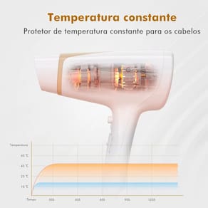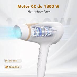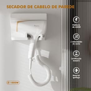 Proteção dos fios Contra o Calor Integrado com a função ar frio, que ajuda a fixar o penteado e proteger os fios do calor excessivo, mantendo o brilho e uma aparência elegante durante todo o dia. Operação com baixo ruído Seu motor DC garante desempenho confiável com baixo ruído, e o suporte de parede incluso traz praticidade e organização. É perfeito para banheiros, salões e suítes de hotéis.