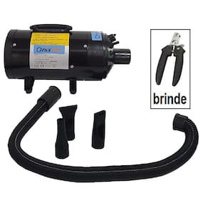 Com o secador e soprador você possui: maior eficiência. Menor tempo de uso. Reduz em até 50% do tempo comparado a outros secadores. Funções de secador e soprador. Mangueira resistente à altas temperaturas. Sem risco de ressecar ou derreter. Potência: 2400w o mais potente da categoria . Velocidade do vento: até 30.000 metros/minuto. 2 velocidades Compacto e leve - 4,200kg alça para transporte. Ajuste de intensidade de temperatura e ar 3 bicos direcionais. 3 temperaturas: quente, morno e frio 6 meses de pela onix pet Marca: Não Informado Ean: 7898949458043
