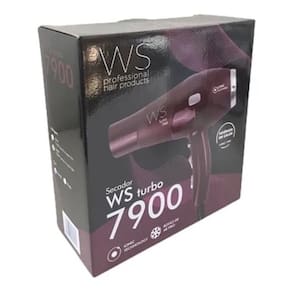 Secador Ws Turbo 7900 ProfissionalO ws turbo profissional possui um motor profissional, ideal para modelar, secar com agilidade.A emissão de íons sela a cutícula dos fios, que reduz a eletricidade estática e proporciona cabelos mais hidratados, sedosos e sem frizz.Possui dois bicosJato de ar frio.Acabamento perfeito e duradouro do penteado.2 velocidades2 temperaturasMelhor desempenho para sacar, alisar, e modelar os cabelos.Voltagem: 220vSecador possui selo de segurança do imetroInmentro: ulbr ocp0029 Marca: WS PROFESSIONAL HAIR PRODUCTS Ean: 6930469698972
