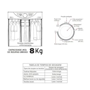 o painel com todas as indicações de tempo de secagem é muito fácil de usar disponível na cor silver, com 3 varais fixos, 6 cabides removíveis, fechamento por zíper e tiras aderentes, proporciona beleza e praticidade para seu dia a dia. Secadora super ciclo fischer, não tem tempo ruim para quem quer ser feliz