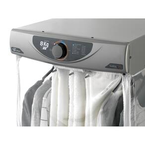 O painel com todas as indicações de tempo de secagem é muito fácil de usar! Disponível na cor silver, com 3 varais fixos, 6 cabides removíveis, fechamento por zíper e velcro, proporciona beleza e praticidade para seu dia a dia.