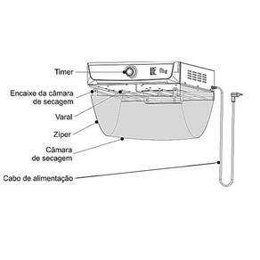 Características: Potência: 1060 Capacidade para 8kg de roupa úmida Temperatura de secagem: 65°C 7 Varões Timer de 120 minutos Com Zíper Desligamento automático