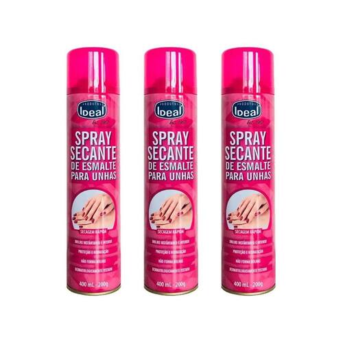 Secante de esmaltes spray ideal 400ml - kit com 3un