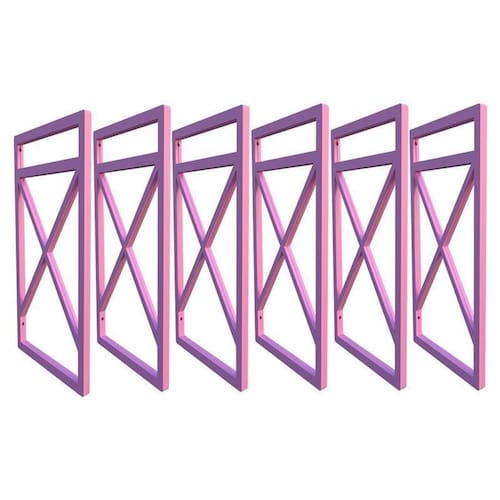 atenção os suportes enviados são os que não enferruja e não descasca pintura. Local de fixação: parede não acompanha as madeiras. Suporte: 6 peças - altura total = 37cm - largura interna = 20cm - espessura do tubo maciço em plástico = 15x15mm - distância entre madeiras = 25cm - cor = rosa - peso suportado = 60kg - material durável - indicado utilizar um suporte a cada 60cm de distancia