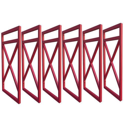 atenção os suportes enviados são os que não enferruja e não descasca pintura. Local de fixação: parede não acompanha as madeiras. Suporte: 6 peças - altura total = 37cm - largura interna = 20cm - espessura do tubo maciço em plástico = 15x15mm - distância entre madeiras = 25cm - cor = vermelho - peso suportado = 60kg - material durável - indicado utilizar um suporte a cada 60cm de distancia