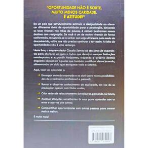 Sinopse Prepare-se para uma transformação que vai impactar todos os aspectos da sua vida e permitir que você se torne um verdadeiro fabricante de oportunidades! Em um país de desigualdades que criam grupos com diferentes níveis de oportunidades, deixando as boas chances nas mãos de poucos, é comum aceitarmos nossos destinos com resignação. Se você é um de muitos vivendo de forma conformada, recusando-se a sonhar com algo diferente pelo medo do desconhecido, saiba que não precisa ser assim. A falta de oportunidades não é um fato. Neste livro, o empreendedor Claudio Santos usa seus anos de experiência para oferecer um guia que ensina a romper limitações auto impostas e expandir horizontes, traçando o próprio destino enquanto capacita aqueles que também caminham nessa jornada, melhorando todo o sistema. Aqui, você vai aprender a: Enxergar além do esperado e se abrir para novas possibilidades de crescimento profissional e pessoal; Buscar e absorver conhecimento de qualidade, em vez de se preocupar apenas com títulos; Criar redes de relacionamento duradouras, pensando no futuro; Analisar situações semelhantes às suas para aprender com os erros e acertos dos outros; Compartilhar oportunidades com outras pessoas para crescer mais e melhor. “Oportunidade não é sorte, muito menos caridade. É atitude! ”