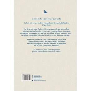 Se você pudesse escolher um animal para representar sua personalidade, qual seria? Uma águia? Um leão? Ou, quem sabe, uma coruja? Mas já pensou num pato? O pato nada, o pato voa, o pato anda... Mas, segundo alguns, não é o melhor em nenhuma dessas tarefas. E que bom! Multipotencial, curioso, dotado de uma impressionante capacidade de aprender e presente em quase todos os continentes, ele é um dos animais mais completos da natureza. O seu êxito não provém de uma habilidade específica, mas de sua incrível capacidade de se adaptar. Em Seja um pato, a premiada empresária e comunicadora Débora Alcantara defende que o profissional do futuro não pode se limitar. É necessário ir além da especialização e cultivar competências como resiliência, flexibilidade e liderança, e integrar aptidões variadas para estar à altura das exigências do mercado. Assim como os patos são capazes de se adaptar aos mais diversos ambientes, nós devemos criar maneiras de nos adequar aos desafios de um mundo em que a maior constante é a mudança. Com visão provocadora, Débora Alcantara propõe um olhar que ressignifica um animal que muitos consideram mediano e revela que a resposta para o seu desenvolvimento profissional pode estar nos lugares mais inesperados. Ao compartilhar detalhes de sua trajetória profissional à frente de marcas e como mentora de empreendedores, Débora expande em Seja um pato o conceito de versatilidade e discute temas como liderança, criatividade e empreendedorismo, além de apresentar os 10 valores comportamentais dos patos, que a inspiraram e auxiliaram a construir uma carreira generalista e aproveitar uma série de possibilidades pouco exploradas. Seja um pato é um convite poderoso para mergulhar em reflexões que podem mudar completamente sua maneira de encarar desafios, liderar e viver na era da interconexão. Afinal, ser bom em muitas coisas pode ser o seu maior trunfo.
