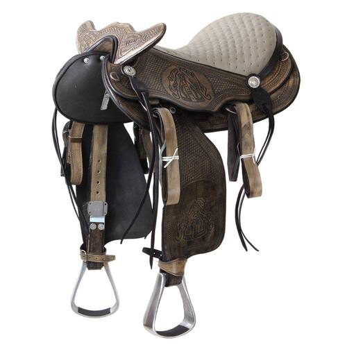 Sela de cabeça modelo multi raças da nossa marca exclusiva Bronc-Steel, podendo ser usada na grande maioria das raças de cavalos e muares existentes, ideal para grandes cavalgadas e até mesmo para trabalhos leves na fazenda. Sela fabricada em couro de alta qualidade com entalhes de Nossa Senhora Aparecida feitos à mão, armação de fibra de vidro, suadores em neoprene ventilado, ferragens em aço inox e assento acolchoado com 15" de tamanho livre, garantindo maior conforto e liberdade na hora da montaria.