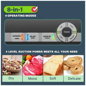 MANTENHA OS ALIMENTOS FRESCOS As seladoras a vácuo POTANE VS2690 usam fios de aquecimento de e motor sem escova. Enquanto outras barginbrands usam fios de aquecimento de e motor barato. 8 em 1 pré ajustes fáceis e sistema de controle inteligente 4 modos de operação e quatro modos de vedação a vácuo. Pode sentir e aspirar com precisão de acordo com o tipo de alimentos. DESIGN SUPERIOR INCLINADO O design superior inclinado evita que o suco seja extraído durante a aspiração de alimentos como carne. Também garante que os sacos de selagem a vácuo sejam totalmente utilizados. ETL UL TESTADO E CERTIFICADO O selador a vácuo POTANE é ETL e UL certificado pelo Nationally Recognized Test Laboratories NRTLs para conformidade com os padrões de segurança de produto aplicáveis, SEGURANÇA É NOSSA PRIORIDADE NÚMERO 1 Marca: Não Informado