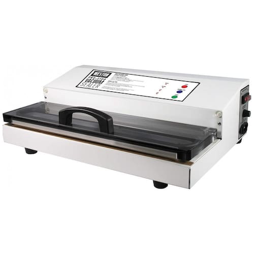 Painel de luz LED com motor refrigerado por ventilador com modo automático para operação com um toque e modo manual. 935 watts 120 volts, 60 Hz. A barra de vedação extra longa com de espessura veda sacos de até . Vácuo rápido e tempo de vedação. A bomba de pistão duplo desenha até Hg de força de vácuo. O selador a vácuo de bancada mantém os alimentos frescos 5 a 6 vezes mais. Modo automático para operação com um toque ou modo manual para um selo personalizado Marca: Não Informado