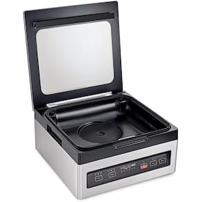 Seladora a Vácuo de Câmara Selovac NEO LNS25. Ideal para cozinhas residenciais e pequenos comércios. Indicado para criar vácuo em sacos e potes, marinar com perfeição e selar embalagens de forma prática e versátil. A embalagem a vácuo prolonga a vida útil do alimento de 3 a 7 vezes em relação ao armazenamento convencional. Feita em aço inox. Possui 5 funções em um único equipamento: Vácuo no saco, vácuo no pote, marinação no saco ou no pote, líquidos e selagem de embalagens. Led indicador. CONSUMO: 0,25kW/h. POTÊNCIA: 250W. CAPACIDADE DA CÂMARA: 2,5L. TAMANHO DE EMBALAGEM MÁXIMO: 25x25cm. PESO: 8,5kg. DIMENSÕES(CxAxL): 30,5x15,5x31cm. Seladora a Vácuo de Câmara Selovac NEO LNS25 é na Atau. Marca: Não Informado