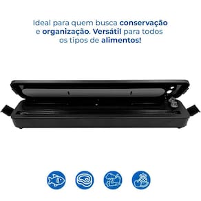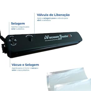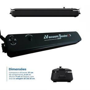Compacta e leve - pesa apenas 410g 640g com embalagem e mede 5 cm A x 7 cm L x 37 cm C .Área de selagem de até 25 cm - ideal para embalagens de diversos tamanhos.Bivolt automático - entrada de voltagem ampla AC100-240V, 50-60Hz.Alta potência de vácuo 49Kpa - preserva frescor e evita desperdícios.Selagem térmica eficiente - aquecimento em temperatura constante para vedação segura e resistente.Design reforçado e à prova de respingos - mais durabilidade e segurança no uso. Marca: Não Informado