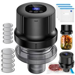 COOL KNIGHT Kit selador a vácuo elétrico Mason, selador a vácuo 3 em 1 automático atualizado para frascos, selador a vácuo para fermentação de armazenamento de alimentos, com tampas regulares de boca larga, sacos a vácuo - NOVA ATUALIZAÇÃO: O kit de vedação a vácuo de frasco de vidro elétrico COOL KNIGHT tem 3 modos, atende a uma variedade de necessidades de vedação no uso diário. Bateria recarregável de 1300 mAh embutida, pode ser usada cerca de 300 vezes após uma carga completa. A máquina de selagem de latas feita de material ABS de grau alimentício e o anel de vedação de silicone espesso de alta qualidade pode ser utilizado com confiança - Kit de vácuo de vedação 3 e 1: selador a vácuo para boca larga e tampa Mason regular, permite que você vede diretamente entre os frascos Mason de boca regular e larga sem desmontar. Os acessórios externos a vácuo são adequados para uso em sacos selados a vácuo para reduzir a bagunça. O kit de vácuo selador de frasco de vidro atende a uma variedade de necessidades diárias de vedação, kit de vedação ideal para utensílios de cozinha, ótima conveniência para você e sua família - Operação automática: pode selar a máquina sem necessidade de operação manual pressionada. Basta pressionar o botão central para começar a extrair ar do frasco interno para o local de vedação. Uma vez que todo o ar foi sugado, ele para automaticamente. O tempo de extração a vácuo de "30S" ou "60S" pode ser selecionado de acordo com suas necessidades. A máquina de vácuo é eficaz para manter seus alimentos frescos por mais tempo - Armazenamento selado de longo prazo: o kit de selador de pote elétrico permite a vedação fácil e duradoura de potes Mason para saladas, alimentos enlatados, fermentação, decapagem, armazenamento de alimentos e muito mais. O design compacto é fácil de usar na cozinha ou para transportar ao viajar ou fazer piqueniques. O selador a vácuo para frascos e bolsas permite que você aproveite a conveniência que traz e o frescor duradouro que transmite à sua comida a qualquer hora, em qualquer lugar - Conjunto de presente perfeito: a lista do kit de vedação a vácuo de frasco de vidro elétrico inclui: 1 selador a vácuo, 1 tampa de frasco de vidro de boca regular, 5, 5 tampas amplas, 1 unidade de vácuo externa, 3 sacos selados a vácuo, 1 abridor de latas, 1 cabo USB tipo C, 1 manual do usuário. O conjunto hermético perfeito para enviar para familiares e amigos com necessidades de armazenamento hermético