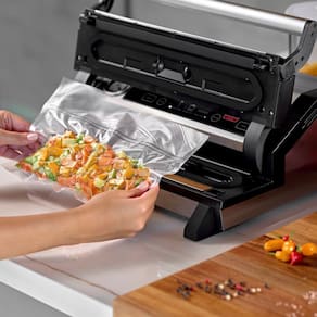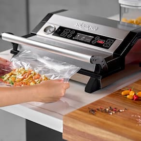 Seladora a Vácuo Portátil Selovac NEO LNS800. Ideal para restaurantes, padarias, confeitarias, açougues e similares. Indicado para embalar diversos tipos de alimentos, incluindo secos, líquidos e pastosos. Possui múltiplas funções em um único equipamento: selar, vácuo no saco, vácuo no pote (pote vendido separadamente) e marinar, permitindo que você aproveite ao máximo cada alimento. Painel e estrutura interna em plástico resistente, durável (ABS) e gabinete em aço inoxidável (AISI 304). ATENÇÃO: Não adequado para selagem de sacos lisos. CONSUMO: 0,22kW/h. POTÊNCIA: 220W. TAMANHO DE EMBALAGEM MÁXIMO: 30x50cm. PESO: 4,8kg. DIMENSÕES(CxAxL): 40x14,5x35cm. Seladora a Vácuo Portátil Selovac NEO LNS800 é na Atau.