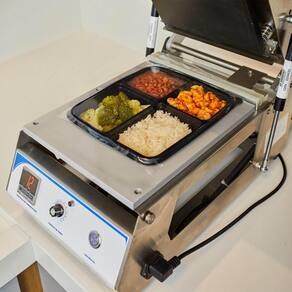 A Seladora de Bandeja Manual R. Baião SB-270 é a solução ideal para estabelecimentos que buscam praticidade, higiene e acabamento profissional na embalagem de alimentos. Com estrutura robusta e fácil de operar, é perfeita para restaurantes, rotisserias, hortifrutis, supermercados, cozinhas industriais e pequenos produtores de refeições prontas. Seu exclusivo sistema de travamento oferece uma selagem perfeita com segurança, enquanto o controle de temperatura digital com temporizador sonoro garante padronização e qualidade em cada embalagem. Capaz de embalar até 8 bandejas por minuto, é compatível com moldes de diversos tamanhos e com filmes PET, PP, BOPP e laminados. Indicada para embalar massas, saladas, carnes, molhos e muito mais, garantindo conservação e apresentação profissional dos alimentos.