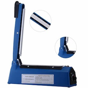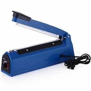 Voltagem: 220v Cor: azul Material: plástico e metal Potência: 150w Espessura máxima de selagem: 0,3mm Largura máxima de selagem: 2mm Comprimento máxima de selagem: 100mm Tempo de aquecimento: 0,2 - 1,5 s Comprimento da selagem: 10cm
