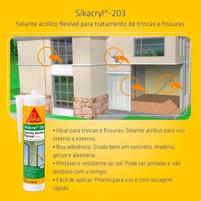 Sikacryl-203 é um selante monocomponente flexível com base em dispersões acrílicas, especialmente dimensionado para tratamento de trincas e fissuras externas.