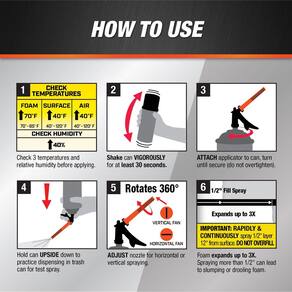 - A fórmula de espuma de spray de célula fechada mantém a umidade fora das estruturas e tem classificação de fogo Classe A para atender aos códigos de construção; uso interno em uma variedade de materiais: incluindo madeira, alvenaria, metais, drywall
