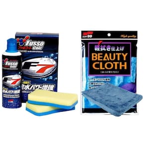 Selante Liquido Fusso Coat + Toalha de Lustro Pele de RaposaEleve a proteção e o brilho da pintura do seu veículo com o Selante Líquido Fusso Coat. Este selante oferece uma camada de proteção duradoura e resistente às intempéries, mantendo sua pintura com um acabamento impecável. O kit inclui a Toalha de Lustro Pele de Raposa para um polimento perfeito e um brilho espelhado. Proteja e aprimore o visual do seu carro com este conjunto de selante e toalha de lustro.Especificações Técnicas:Selante Líquido• Peso:300ml• Textura: Líquida• Nível de Brilho: 9• Nível de Repelência: 8• Nível de Proteção: 9• Acompanha 2 Esponjas• Rendimento até 4 Veículos• Durabilidade até 7 MesesAplicação:1 - Lave e seque bem para remover toda a sujeira na pintura. (Para um melhor resultado de brilho e durabilidade, faça a descontaminação com Clay Bar Soft 99);2 - Agite bem o frasco aplicando uma quantidade moderada do produto no lado amarelo da esponja aplicadora;3 - Espalhe uniformemente em movimentos cruzados;4 - Deixe secar de 5 a 10 minutos no verão e de 15 a 20 minutos no inverno5 - Remova o excesso com uma microfibra macia;DICA - Faça a manutenção com o Spray Fusso COAT Speed e Barrier sempre que desejar mais repelência.Cuidados:1 - Utilize o selante em local limpo fresco e arejado;2 - Não aplique sob o sol ou quando a lataria estiver quente;3 - Evite locais com ventos fortes e com poeira;4 - Não utilizar em plásticos, para-choques sem pintura, pneus, vidros ou couro, se necessário limpe imediatamente o local;5 - Não deixe aplicado por um longo tempo;6 - Se o carro já foi pintado, teste em uma pequena área antes da aplicação total;Especificações Técnicas:Toalha de Lustro• Tecido Especial Japonês que Proporciona Brilho Extraordinário na Lataria do Veículo• Aumenta Consideravelmente o Brilho em Enceramentos pois Remove o Excesso de Ceras ou Selantes de Forma Uniforme• Não Provoca Choque Eletrostático (Evita que a Poeira Grude nas Primeiras Horas Após o Lustro)• Pode ser Utilizada Para Lustrar Vidros.Aplicação:1- Deslize a toalha em apenas um sentido, não se deve utilizar em movimentos circulares nem vai e vem.2- Passe sobre a lataria sem fazer muita pressão para um melhor resultado.3- Após o uso lavar e secar bem a toalha em um local bem arejado.4- Após seco segure as extremidades da toalha e abane algumas vezes, pois ajudará os fios a se levantarem devolvendo a macies da microfibraConteúdo da Embalagem:• 01 Fusso Coat F7 Soft99 300ml• 02 Esponjas Aplicadoras• 01 Toalha de Lustro Beauty Cloth Raion Pele de RaposaImportante:• Garantia de 273 dias.• Valor Kit.
