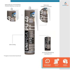 O Selante PU40 da Unipega é um monocomponente de alta performance, ideal para vedação e colagem de diversos materiais, como pré-moldados, painéis metálicos, concreto, aço, alumínio, madeira, vidro, fibra de vidro e cerâmica. Quando o espaço de selagem exige maior cobertura ou resistência a possíveis movimentações, o PU40 Unipega é a solução perfeita, oferecendo calafetação e vedação precisas. Além disso, pode ser pintado após a secagem, garantindo um acabamento personalizado.